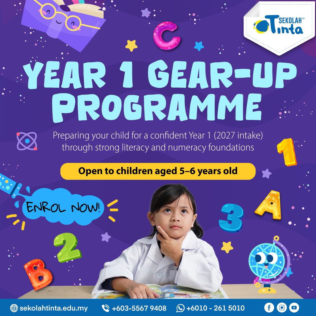 Give your child a confident head start into Year 1 with Sekolah Tinta’s Gear-Up Programme, specially designed for children aged 5–6 preparing for the 2027 intake.